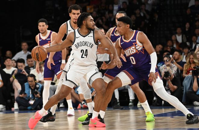 次节比赛,篮网率先连得4分,太阳连追5分,篮网回敬一波7-0攻势扩大16分优势,克拉克斯顿吃T,太阳追回3分。马丁三分命中,邓恩、狄龙与伊戈达罗接连暴扣追分,小波特上篮与三分连续得分,克拉克斯顿连续得分扩大17分优势。篮网吃T送布克罚中一球,曾凡博第二节还剩3分06秒替补登场,且仅34秒曾凡博连续两次犯规送太阳4罚3中。篮网也连续造犯规6罚5中,狄龙三分与阿伦抛射追分,克拉克斯顿空接暴扣,曾凡博二次进攻反篮命中却超时无效,吉莱斯皮三分命中,上半场结束篮网71-59领先太阳。